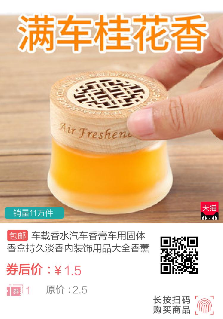 推荐最新车载用品大全,领券购买更实惠 【宝贝名称】车载香水汽车香膏车用固体香盒持久淡香内装饰用品大全香薰座摆件原价:2.5元优惠价:1.5元【优惠信息】合计优惠:1.04元优惠券:1元券优惠后购买金额:1.46元【购[详细]